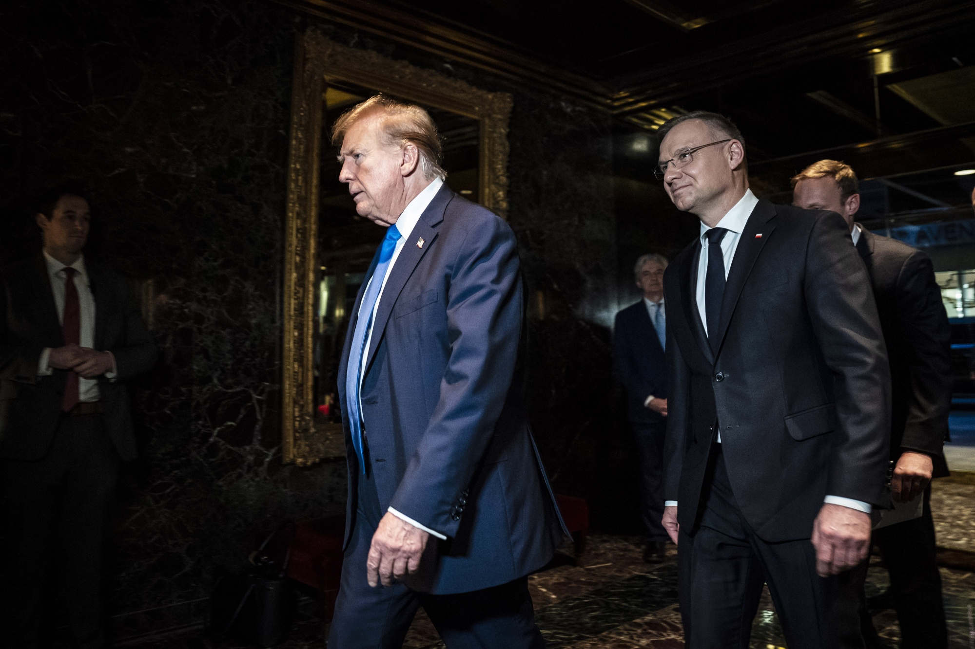 Donald Trump welcomes Polish President Andrzej Duda at Trump Tower in New York, in April. Photographer: Jabin Botsford/The Washington Post/Getty Images